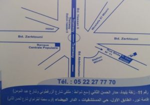 الرقم11، زنقة بليدة، مدار الحسن الثاني (سبع شوانط : ملتقى شارع الزرقطوني وشارع عبد المومن) حي المستشفيات، الدار البيضاء